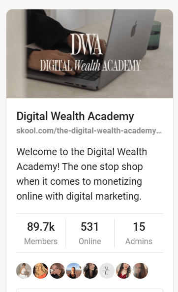 Learn how to promote The DWA course or any other product. This will teach you how to quickly grow your audience and make sales via social media marketing.