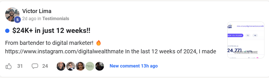 This course actually comes with its own community of 20,000+ people where you can ask questions & network. In addition to that, if you get the course with me, you will be added into my PRIVATE CHANNEL youll receive my personal phone number & an optional group chat with weekly calls! I want to see you become a success story!